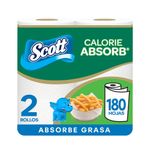 Toalla de cocina Scott Calorie Absorb diseñada especialmente para la absorción de grasas.Absorbe hasta 118 kcal gracias a su exclusiva tecnología Quick Absorb
